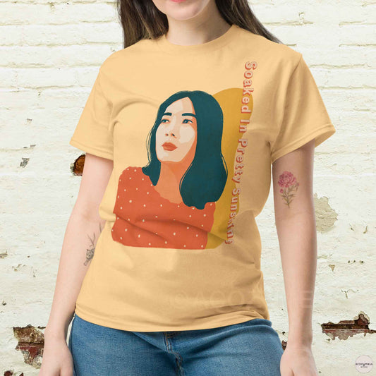 Soaked in Pretty Sunshine – Woman Illustration Tee | Summer Cotton T-Shirt