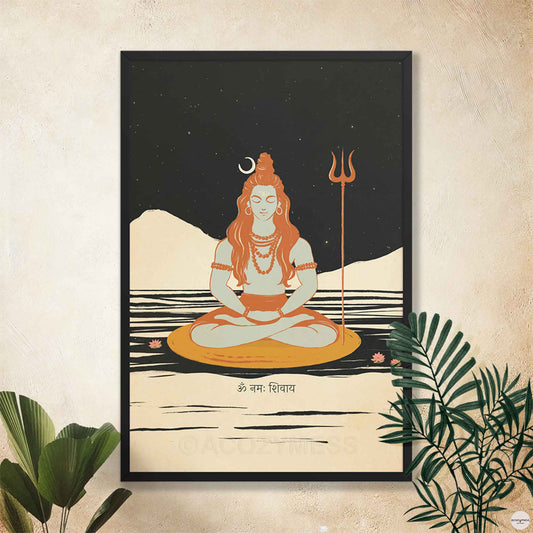 Shiva Wall Art Poster – Lord Shiva Meditative Indian Spiritual Wall Decor for Living Room or Temple