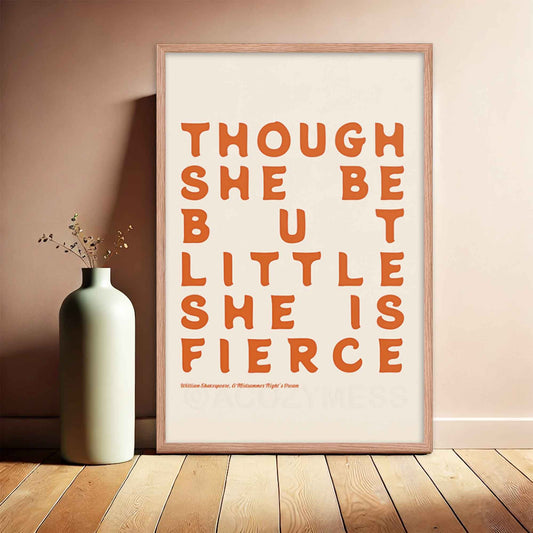 Shakespeare Poster, Though she be but little she is fierce Poster, Girls Room Wall Decor, Literary Poster