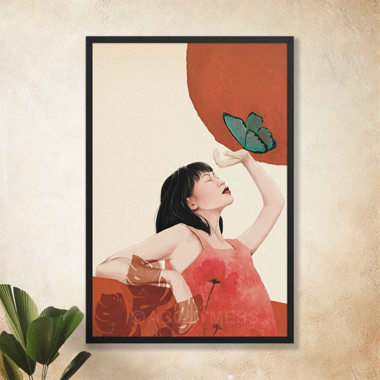Woman & a Butterfly Art Print | Woman Art Poster | Feminine Wall Art