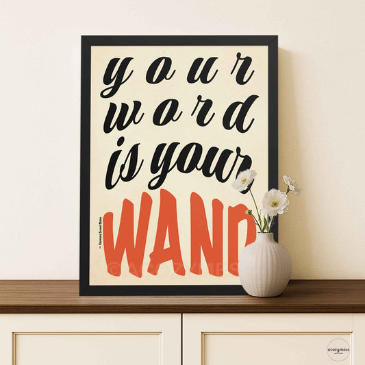 Your Word Is Your Wand Quote Poster – Florence Scovel Shinn Wall Art – Affirmation Print in Black and Red on Beige Background – Spiritual Wisdom Decor