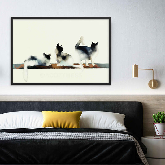 Cat Poster, Cat Prints Wall Art, Cute Art Prints, Three Cats Art