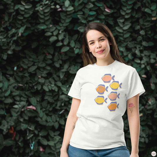 Colorful Fishes Illustration T-Shirt | Cotton Graphic Tee | Fish Tshirt | Wearable Art