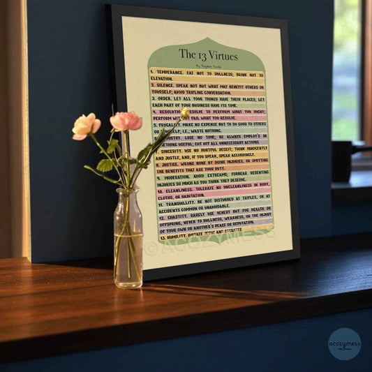 Benjamin Franklin's 13 Virtues Poster | Motivational Wall Art | Self-Improvement & Discipline Print