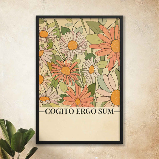Cogito Ergo Sum Poster with Floral Illustration | Philosophy Poster for Home or Office Decor