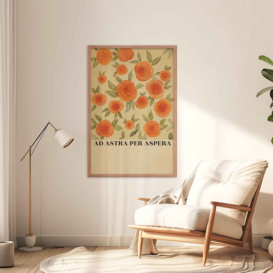 Ad Astra Per Aspera Poster | Inspiring Latin Phrase Wall Art with Floral Design for Motivation and Decor