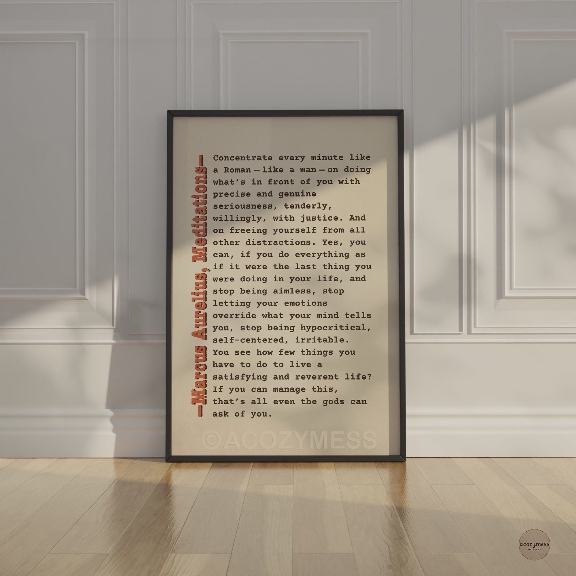 Affiche murale avec citation de Marc Aurèle : « Concentrez-vous comme un Romain » | Philosophie stoïcienne