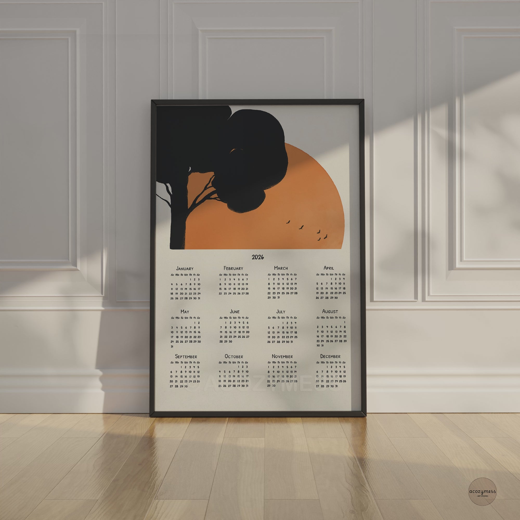 Bring a touch of elegance and organization to your space with this beautifully designed One Page Yearly Calendar. Blending structured layout with zen scenic illustration of sun, this poster is both a functional planner and a piece of art — perfect for home offices, studios, or as a thoughtful gift.